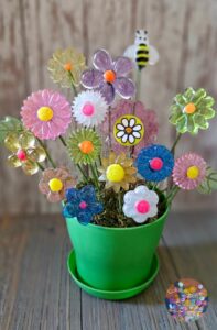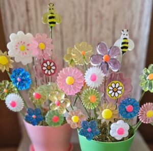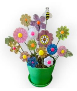 Vintage look Acrylic Flowers in a green flowerpot