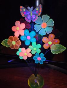 GLOW in the DARK Flowers Resin Blacklight glow Gift for Mom 1960’s Retrostyle Kinetic