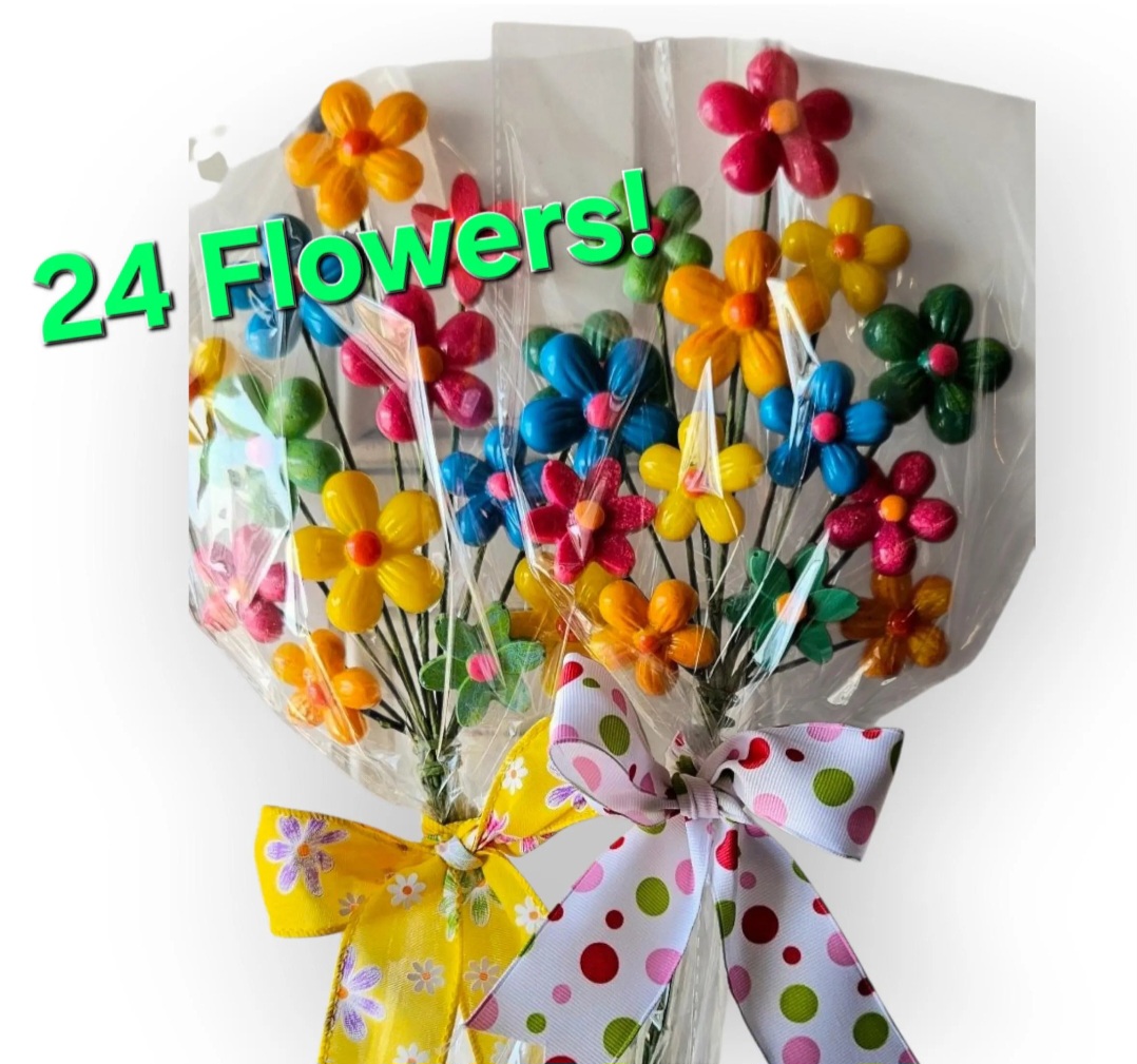 In this listing you will get 24 flowers wrapped in cellophane with a pretty bow. Ready for gift giving or arranging in your favorite vase!