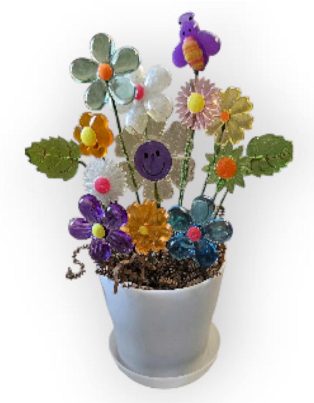 You get 3 medium stems, 6 small flowers and a medium size HAPPY FACE flower 😊. There are also 2 leaves and a bug.