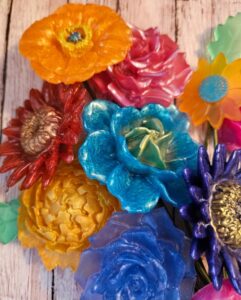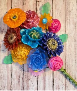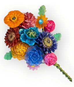 This is a BIG bouquet. It is pretty heavy. It is about 24″ tall. You can trim the stems to whatever length you want for your own vase.